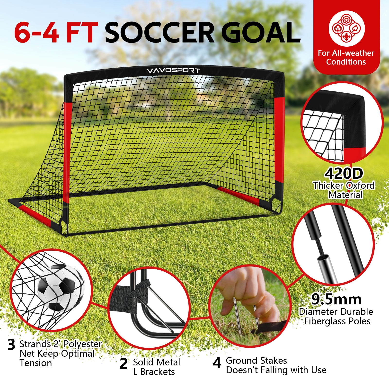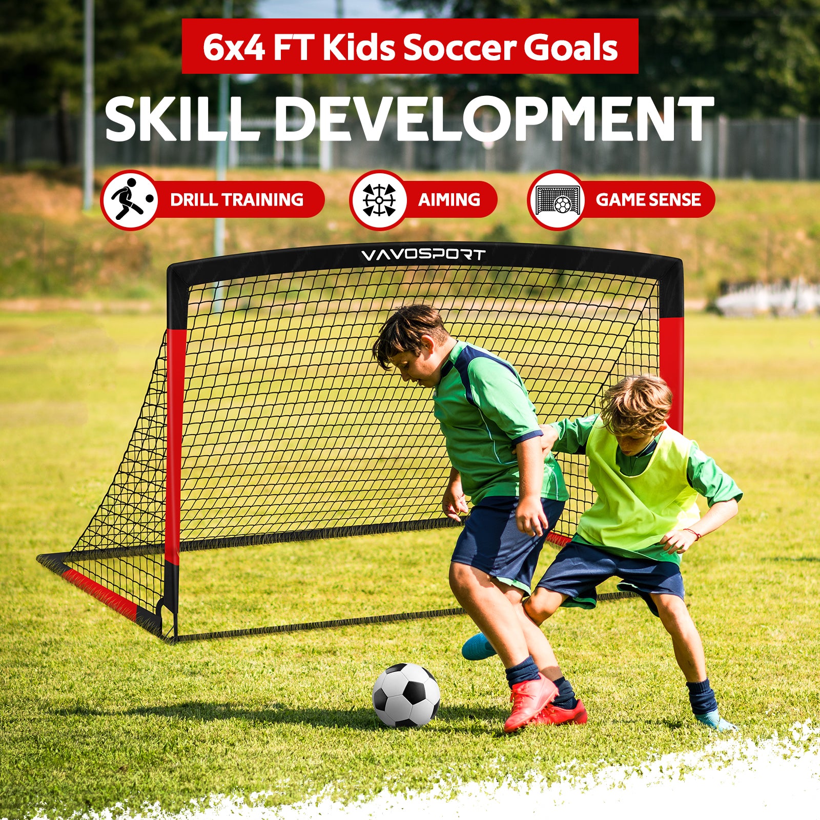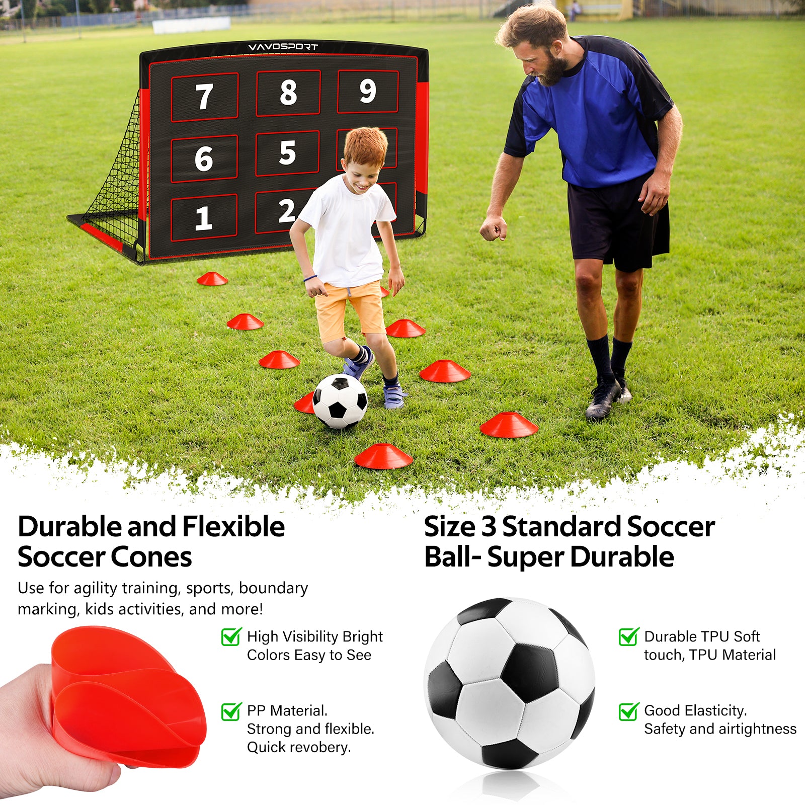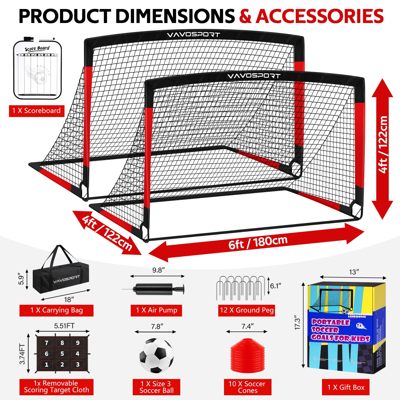 Kids Soccer Goals for Backyard Set, 6x4 ft Portable Pop Up Soccer Goal Training Equipment, Soccer Net with Soccer Ball, Target, Cones, Soccer Set for Youth Toddler Games, Sports Outdoor Play